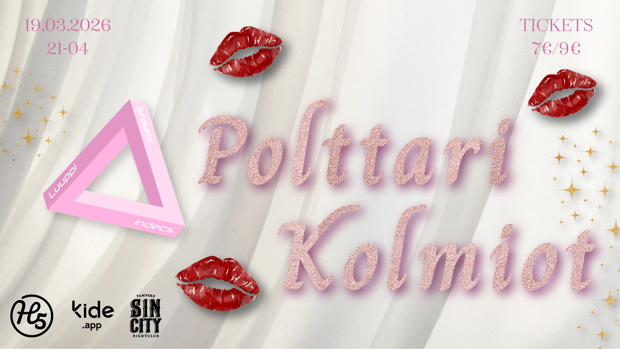 WHAT: PolttariKolmiotWHERE: Sin City, Hämeenkatu 24 and H5, Hämeenkatu 5WHEN: 19th March, 9 PM – 4 AMCHANGING BARS: the night of the party at 1 AM for freeOPTIONAL DRESS CODE: Vails, bride-to-be or groom-to-be -ribbons
